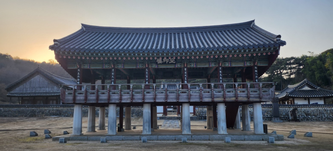 서원 초입에 홍살문과 하마비를 지나면 산앙루(山仰樓)라는 거대한 누각이 자리 잡고 있다.