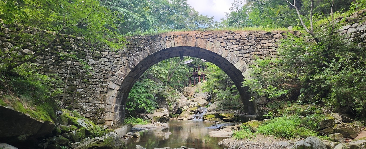 길이 14m, 높이 4.7m, 폭 4m로 기단부(基壇部)는 자연 암반이 깔려 있어 홍수에도 다리가 급류에 휩쓸릴 염려가 없는 견고한 자연 기초를 이루고 있다. 다리의 아래 부분부터 길게 다듬은 돌을 연결하여 무지개 모양의 홍예(虹霓)를 쌓았으며, 그 짜임새가 정교하여 밑에서 올려다보면 부드럽게 조각된 둥근 천장을 보는 듯한 느낌을 준다. 홍예를 중심으로 양쪽으로 자연석을 쌓아 석벽을 이루고 그 윗부분에도 돌을 쌓았는데, 모두 주변의 냇돌을 이용하였다.