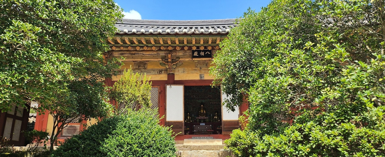 정면에 2개의 기둥과 2개의 활주로 내어 지붕을 길게 돌출시켰다. 내부는 내진과 외진으로 나누어지는데 간단한 벽과 문으로 구분하고 있으며 내진 부분의 배면 한쪽을 막아 불상을 안치하는 불단으로 사용하고 있다.