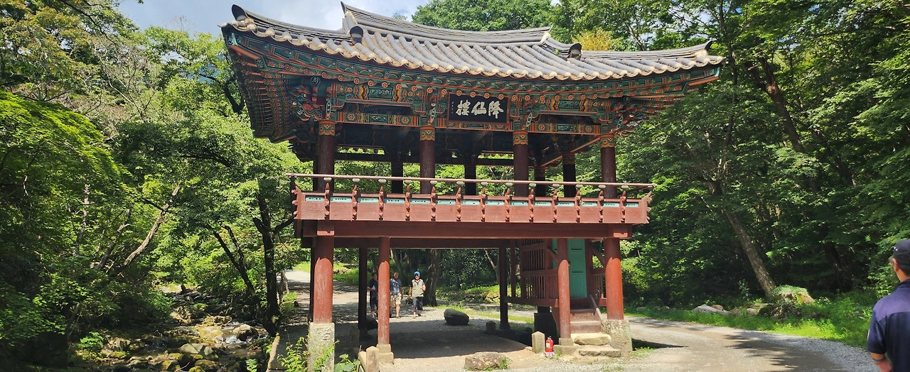 강선루는 초창 연대는 알 수 없으나 1930년에 수리했다는 기록이 남아 있는데, 측면 기둥 중의 하나가 계곡에 빠져 있는 점이 특이하다. 2층으로 이루어진 누각으로 1층은 정면 1칸, 측면 1칸이고, 2층은 정면 3칸 측면 2칸의 팔작지붕을 얹은 건물이다. 2층은 전체가 마루이고 사방에 계자난간을 둘렀다. 1층의 기둥 사이가 넓어 2층 누각을 떠받치는 보조기둥을 4개 세웠다. 누각의 정면과 후면에는 서로 필체가 다른 ‘강선루(降仙樓)’ 편액이 처마 가운데 걸려있고, 다른 기문이나 시판은 없다.