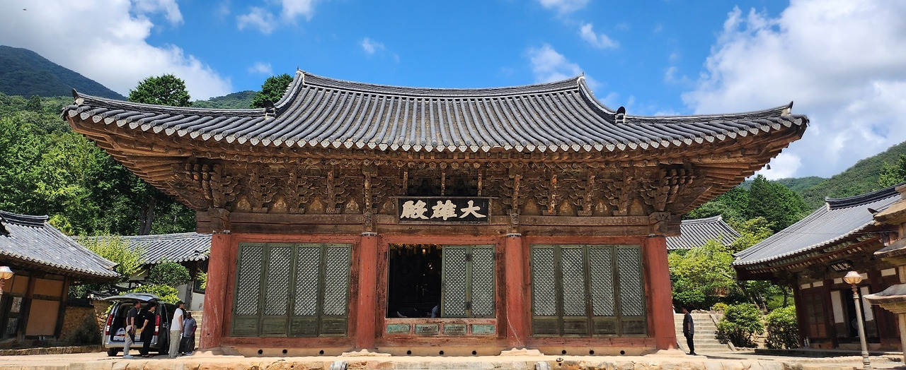 정면 3칸, 측면 3칸 규모의 대웅전은 자연석 기단 위에 민흘림기둥을 세워 지어졌고 기둥의 머리에는 용머리 장식을 하였다. 지붕 옆면이 여덟 팔(八) 자 모양인 화려한 겹처마 팔작지붕을 얹었다. 지붕 처마를 받치면서 장식을 겸하는 공포가 기둥 위뿐만 아니라 기둥과 기둥 사이에도 있는 다포식 건물이여 공포를 앞면과 뒷면에는 각 3조, 양 옆면에는 각 2조씩을 배치하여 장엄하면서도 화려함을 표현하였다. 정면 가운데 칸의 두 기둥 사이에는 두 마리의 용을 장식한 것이 특징이다.
