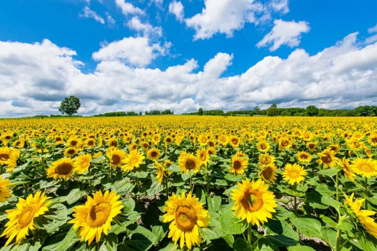 라벤더와 함께 홋카이도의 여름을 대표하는 꽃· 해바라기. 온통 밝은 노란색으로 물드는 광경은 탄성이 나온다. 그중에서도, 호쿠류쵸의 「해바라기의 마을」이나, 도호쿠·나요로시의 해바라기 밭 등은 일본 제일의 규모를 자랑한다. 절정이 되는 7월 하순부터 8월 상순에는, 광대한 토지에 보이는 모든 해바라기가 피어 있어, 방문하는 사람들을 즐겁게 하고 있다.