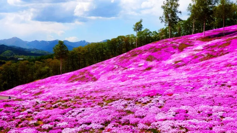 벚꽃과 함께 봄을 대표하는 풍경인 꽃잔디. 홋카이도에서는 5월 중순부터 6월 상순에 걸쳐 절정을 맞이한다. 빨강이나 핑크, 흰색 등 형형색색의 꽃이 주변에 가득 피어 마치 융단처럼 펼쳐지는 광경은 압권이다.