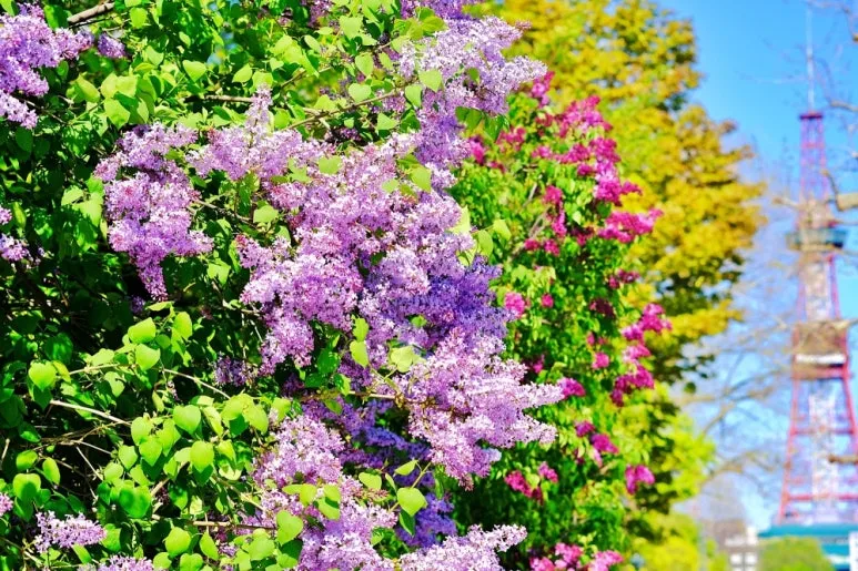 그 달콤한 향기가 초여름의 시작을 알게 해주는 라일락. 삿포로에서는 시의 나무로 선택되어 시민들에게 친숙한 친숙한 꽃. 5월 중순경부터 연보라색과 흰색 꽃이 피기 시작하고, 늦게 피는 것은 7월 상순경까지 즐길 수 있다.
