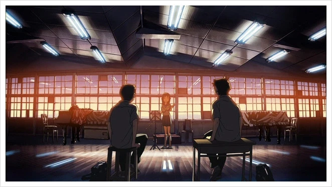 애니에서 등장하는 음악실은 2층에 있는 것처럼 보이지만 실제의 장소는 1층에 있다.