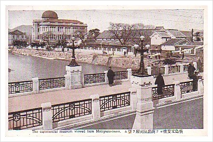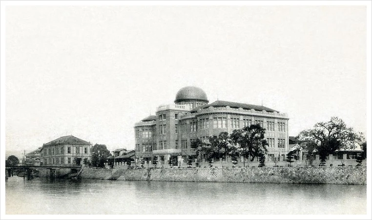 오늘날 원폭 돔이라고 불리는 히로시마현 산업장려관이 멀리 보인다. 1930년대 촬영된 사진.
