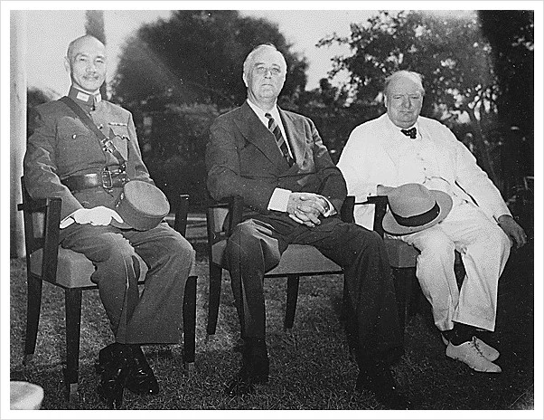 (1943년 11월 25일 카이로에 모인 연합국 지도자들, 왼쪽부터 장제스, 루스벨트, 처칠)