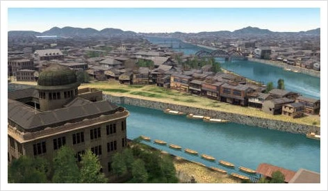 축소 모형으로 재현한 원폭투하 전의 히로시마시의 모습이다