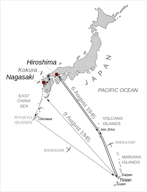 (티니안에서 히로시마와 나가사키로의 폭격기의 이동경로)