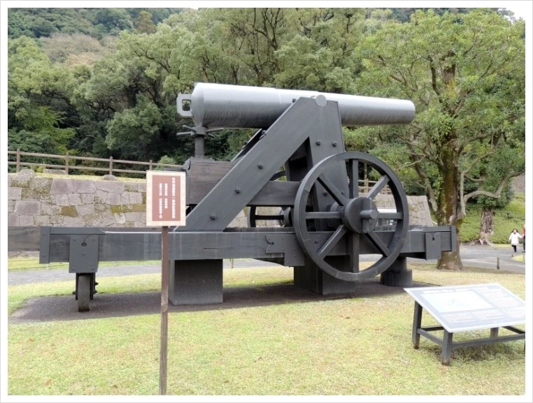 이 대포는 가고시마만 연안에 배치되어 있던 포를 다시 복원한 것으로 약 68KG의 철제 원형 포탄을 약 3KM까지 날려 보냈다고 한다.