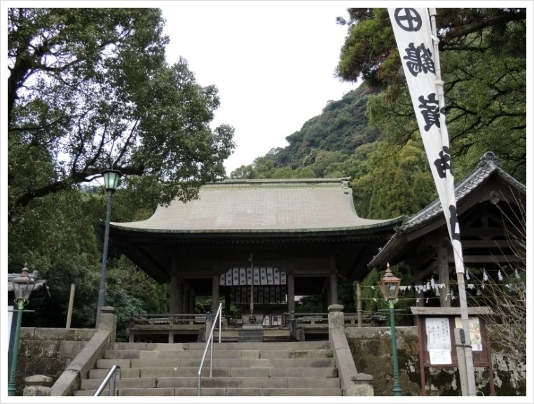 쓰루가네 신사는 시마즈 가문의 역대 당주와 그 가족을 신으로 모시고 있다. 이 중에 가메주 공주(1571-1630)라는 16대 당주 시마즈 요시히사의 딸이 있는데 그 딸이 매우 미인인 데다 마음씨가 착했다고 한다.