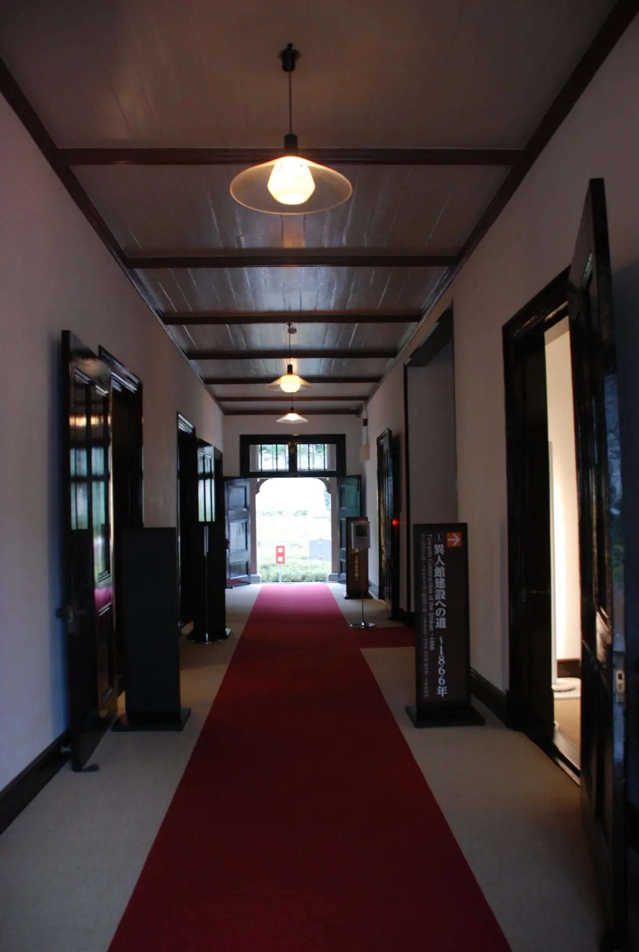 당초, 긴자거리 설계등에도 관계된 토마스·워틀스의 설계라고 보이고 있었지만, 워틀스는 1866년부터 아마미 오시마에서 제당 공장의 건설에 참여하고 있었기 때문에, 현재는 방적소에 관계한 영국인이 설계·지도했다고 추정하고 있다. 서양 건축 수입 초기에 일본 각지에 건설된 유사한 건축물 중 현존하는 2층 주거지로는 최초기의 것으로, 에도막부 말기 서양식 건축을 보여주는 유산으로 보존되고 있다.