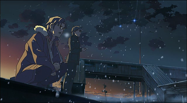 폐역의 플랫폼에서 이야기를 나누고 있는 두 사람, 대화내용은 나오지 않지만 그들이 겪어온 시간들, 그리고 현실에 대해 타쿠야가 말하고 있는 것으로 해석된다.