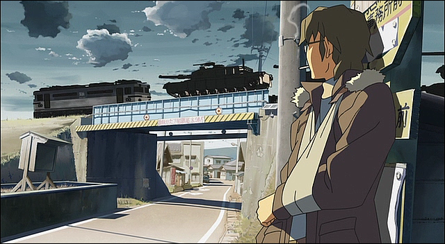 히로키를 기다리는 타쿠야의 눈에 보이는 기차에 실린 전차들이 이동하는 모습, 전쟁직전의 긴박한 상황임을 암시하고 있다.