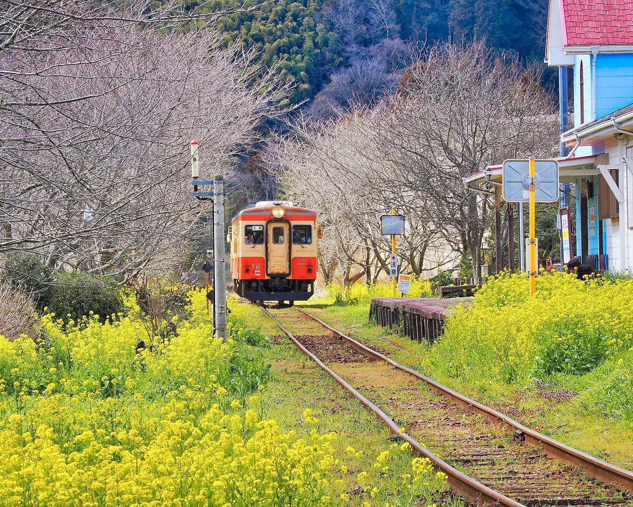 이스미선을 봄에 여행하는 이유는 노선 주변의 유채꽃밭 때문이다. 매년 2월 하순부터 4월 상순 사이가 이스미선 주변이 꽃밭으로 변하는 시기이다. 이스미 철도의 길이는 전체 6.8km이고 그중 13km, 5만 3천 제곱미터가 노란 융단이 펼쳐진 듯한 유채꽃밭 선로로 변신. 봄 여행을 즐겁게 한다. 이스미선의 열차 사진들을 보면 한결 같이 유채꽃이 가득하다. 철도 마니아가 많은 일본에서 이 장면을 찍기 위해 많은 이들이 철로변에 나와 있는 것을 볼 수 있다. 이 유채꽃밭은 자연적으로 형성된 것이 아니라 인위적으로 만든 것이다. 이스미 철도의 역사를 살펴보면 유채꽃밭을 왜 만들었는지 알 수가 있다.