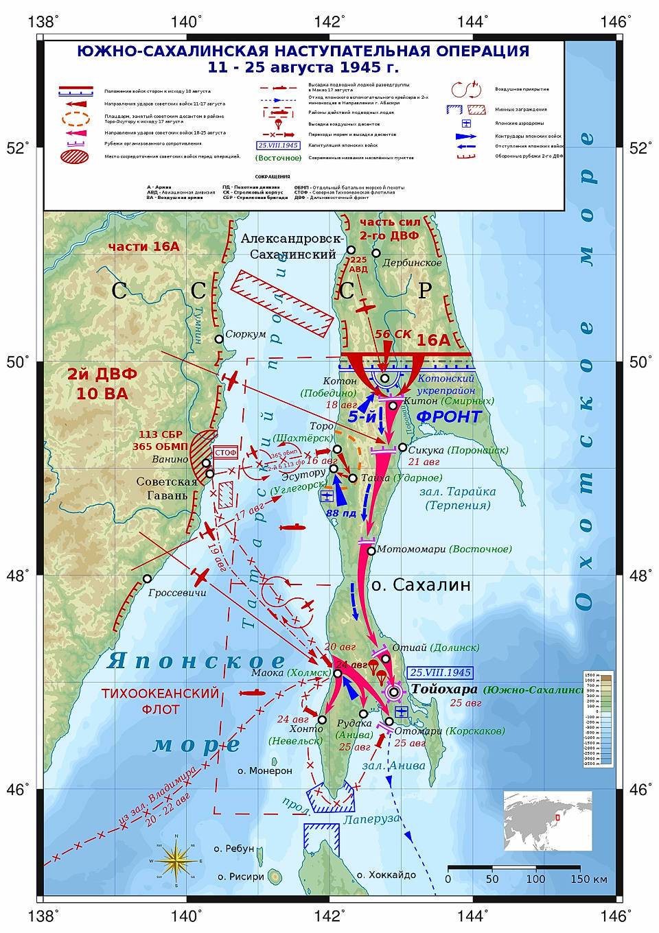 이때 벌어진 전투를 사할린 전투라고 부르는데 8월 15일 일본의 무조건 항복으로 다른 지역에서의 전투는 중단되었지만 사할린에서의 소련군의 공격은 중단되지 않았다. 사할린전투는 8월 23일까지 진행되었고 8월 25일 소련군의 오토마리 점령으로 전투는 끝이 났다.