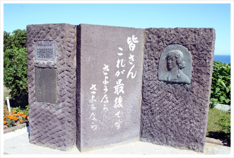 이것이 이번 이야기 주제인 9명의 전화 교환수의 영혼을 기리는 위령비이다. 9명의 처녀동상九人の乙女の像(쿠닌노오토메 노죠)이라는 이름의 이 위령비는 1945년 8월 20일 발생한 사할린 마오카 우편 전신국 사건에서 자살로 생을 마감한 9명의 전화교환수를 위한 것이다. 이 사건은 일본에서는 마오카 우편국사건真岡郵便局事件 혹은 기타노히메유리北のひめゆり 사건으로 불린다.