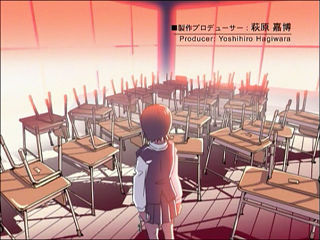 그리고 텅 빈 교실에 서 있는 미카코, 이 장면은 구름의 저편, 약속의 장소, 초속 5 센티 미터에서도 반복되는데, 텅 빈 교실이 상징하는 장면은 미카코의 외로운 세계를 의미하는 것이며, 그녀의 상실감을 그대로 보여준다.