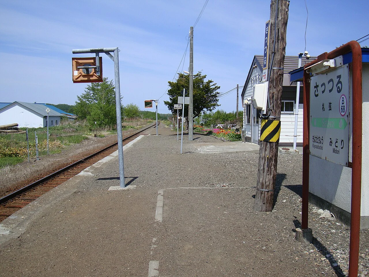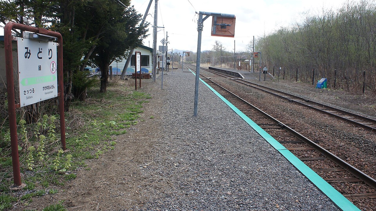 이제 센모 본선의 여행은 북동방향으로 계속해서 나아간다. 카와유 온천역의 다음 역은 미도리역緑駅이다.