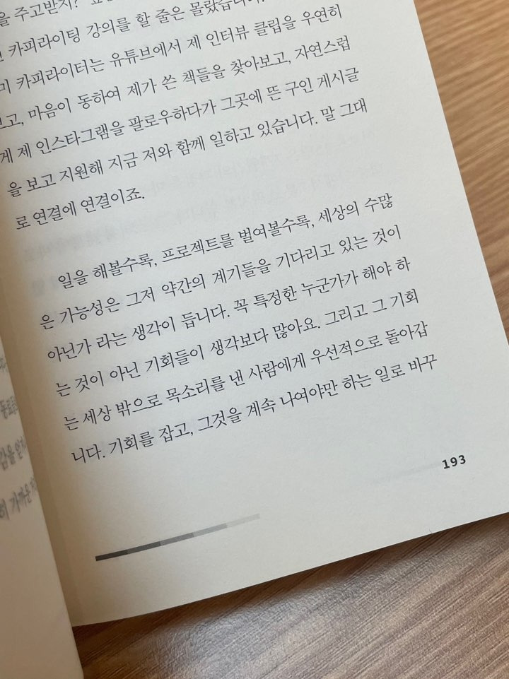 기회를 잡고, 그것을 계속 나여야만 하는 일로 바꾸는 건 기회를 잡은 사람의 능력에 달려 있고요.