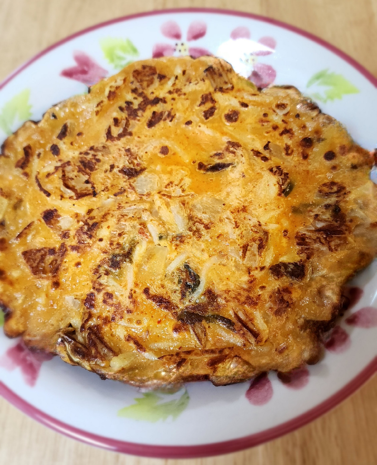 (좌)참치 김치전, (우)감자채 김치전. 탔지만 맛있으니 괜찮다.