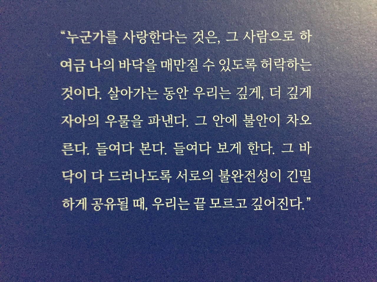 서로의 불완전성이 긴밀하게 공유될 때, 우리는 끝 모르고 깊어진다.