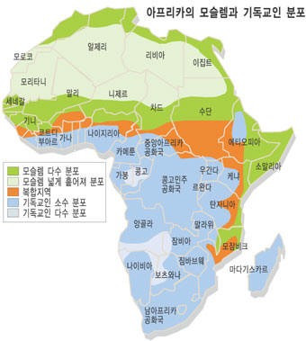 마지막으로 아프리카 내 이슬람교도와 기독교도의 분포를 보여주는 지도를 올리며 이 글을 마친다.