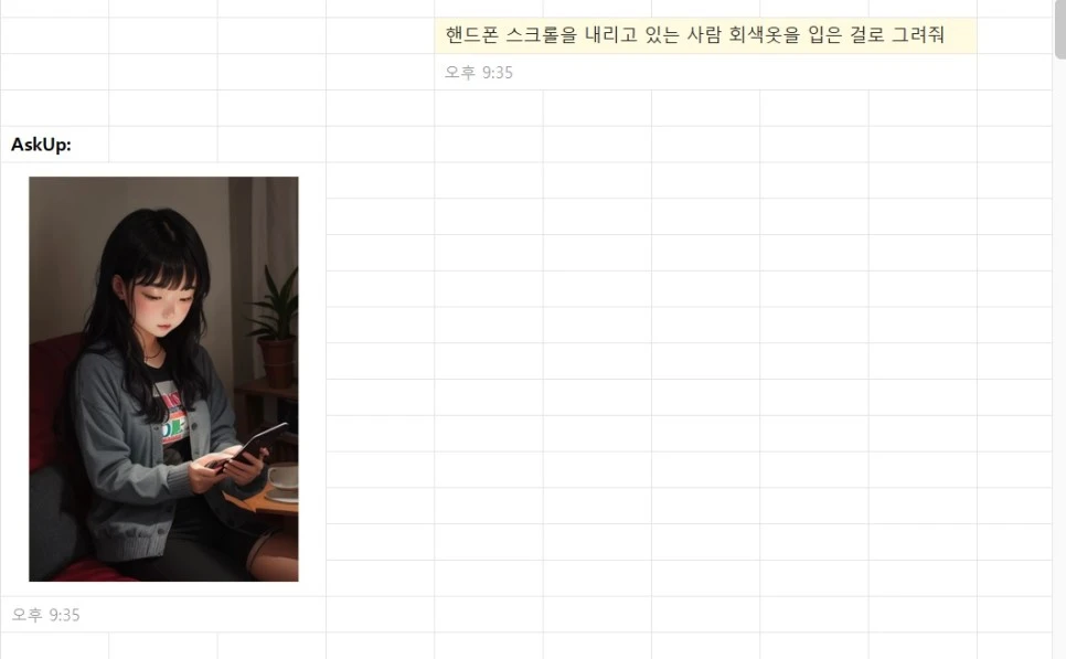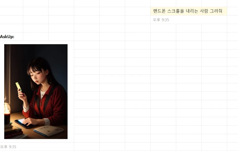 나 역시 최근 에세이를 쓰면서 카카오톡으로 이미지를 생성할 수 있는 AskUp을 통해 썸네일을 만들어봤다.