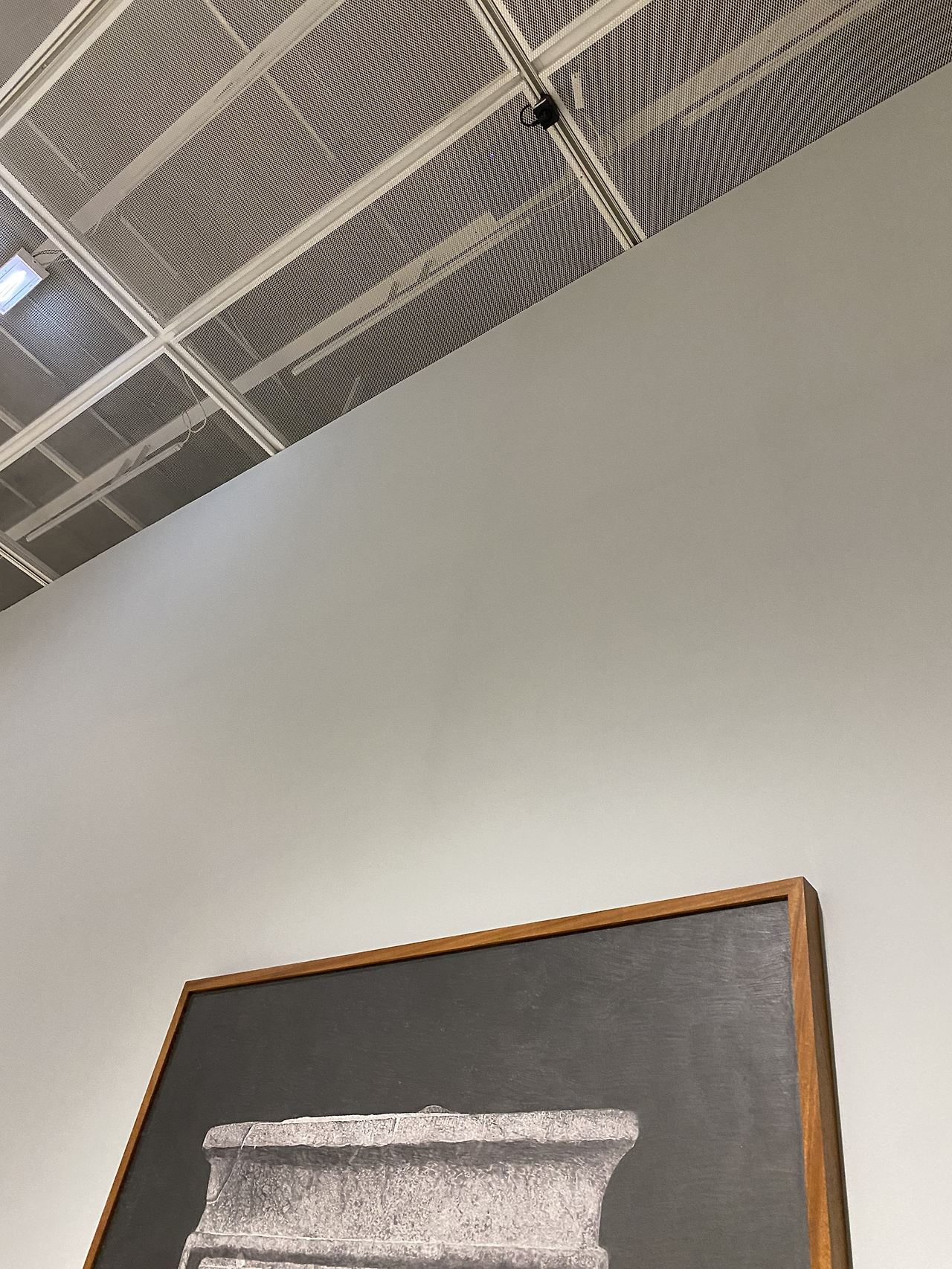 또 다른 인상깊었던 한 작품은 이집트 시기 한 형제의 우애를 찬송하는 찬가에 대한 작품이었다. 이집트 학자가 관련한 찬가를 만든 것도 함께 들을 수 있었다. 전시 작품 앞에 서면 그 찬가가 들려오는데, 천장을 바라보니 이렇게 스피커가 달려있었다. 약간 불교의 불경 외우는 소리같기도 한 음악이었는데 이렇게 전시와 함께 음악도 들려주어서 재미있었다.