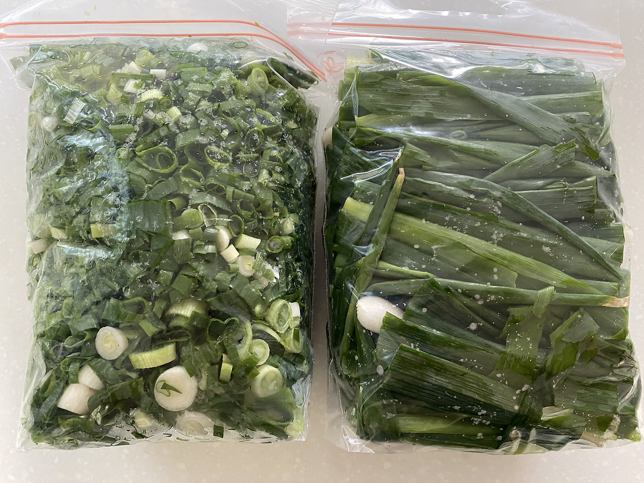 그 외에도 냉동실에 얼려둬야 할 것들이 있다. 파 썬 것, 레몬 썬 것 등 각종 다진 야채들이다.