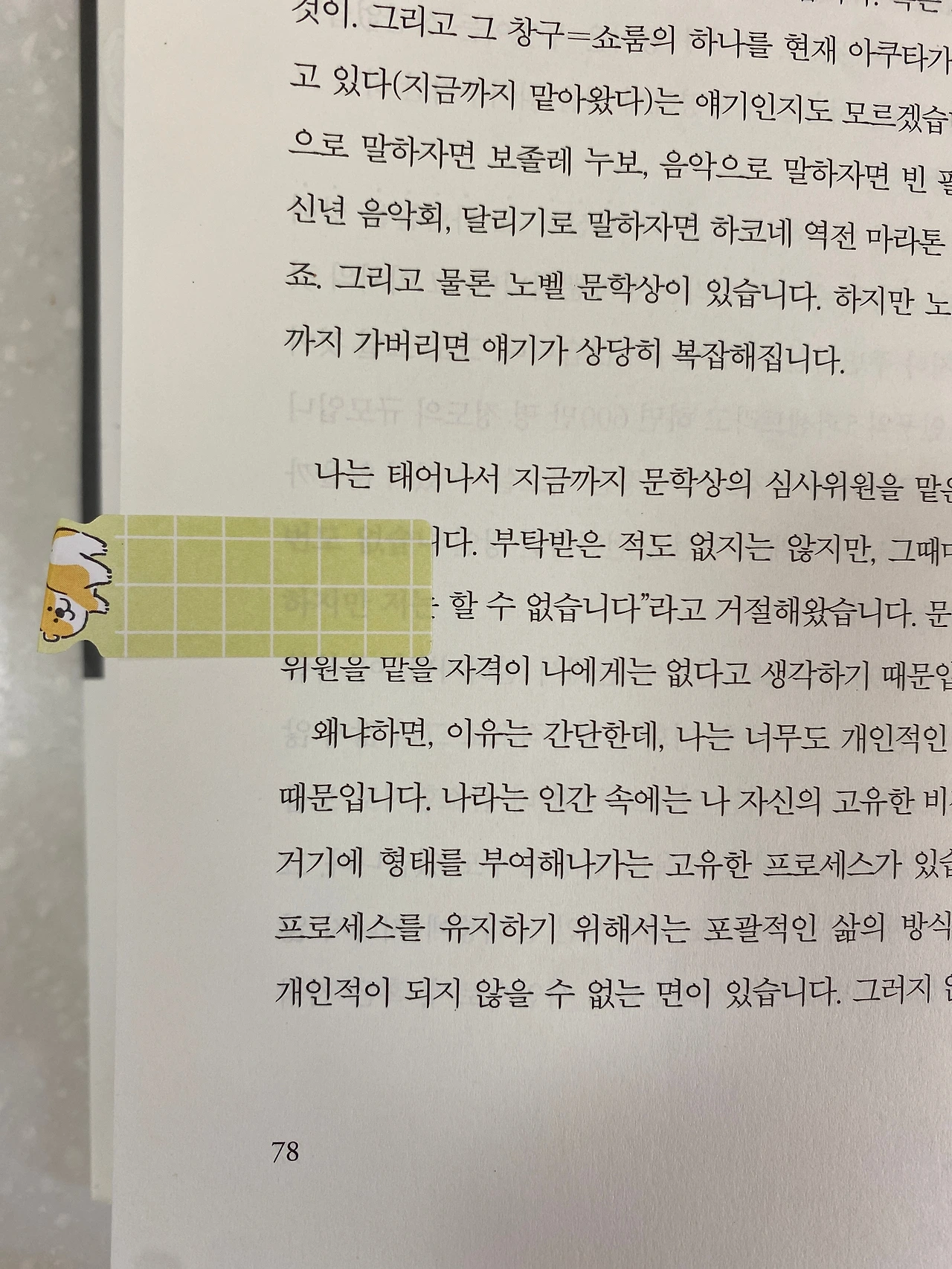 그도 그럴 것이 나에게는 그 상이 작가로서의 ‘입장권’이었기 때문입니다. 입장권이 있는 것과 없는 것은 얘기가 완전히 다릅니다. 눈앞의 문이 열리는 것이니까요. 그리고 그 입장권 한 장만 있으면 그다음은 어떻게든 될 거라고 나는 생각했습니다. 아쿠타가와상이 이러니 저러니 하는 건 그 시점에는 생각할 여유도 없었습니다.