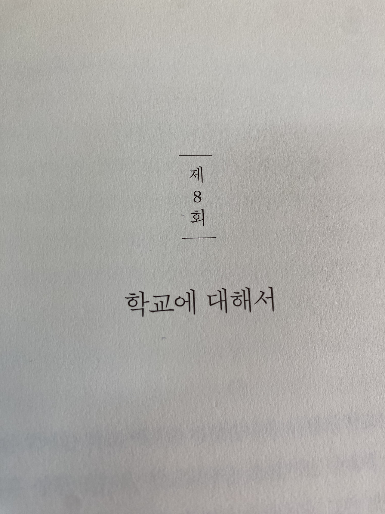 그러면서 학교에 당부한다. 효율과 반대말인 '상상력'을 가진 아이들을 압살 하지 말라는 부탁이다. 학생 하나하나의 개성이 살아남을 수 있는 장소를 부여해 달라고 한다.