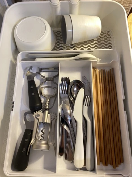 주방 식기나 아기를 위한 커트러리도 모두 있어서 편리했다. 숙소 자체가 큰 건 아니어서 성인 4명은 좁을 것 같긴 하지만 부부와 아이 2명이라도 충분한 식기와 커트러리가 마련되어 있었다. 아기 식판이랑 숟가락 포크 다 챙겼었는데 챙길 필요가 없었다.