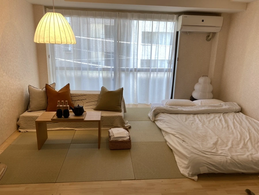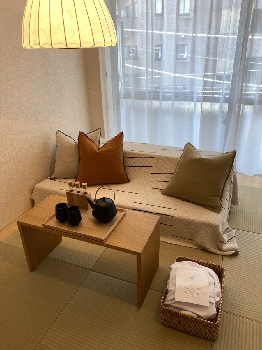 아기랑 함께 하는 여행에서 가장 걱정되는 것이 어쩌면 낙상이다. 호텔은 대부분 침대가 너무 높고 집과는 달리 안전가드가 없기 때문에 호텔 침대가 아무리 좋다고 해도 아기와 함께하는 여행에서는 좋은 게 좋은 게 아니다. 그래서 우리도 다다미방을 알아본 것인데, 집에서보다 편안하게 잤다.