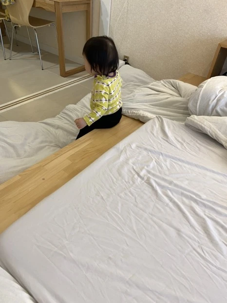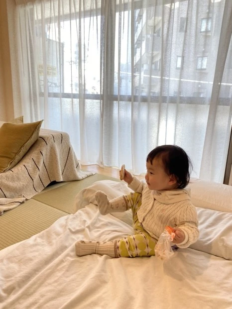다만 다다미방으로 올라가는 턱이 있기 때문에, 다다미방 밑에 소파를 펼쳐놓으면 된다. 사진 옆에 보이는 소파가 조립형이기 때문에 이 소파를 펼쳐서 다다미방 밑에 두니 낙상 걱정이 없었다. 다다미방 아래에도 이불이나 조립식 소파를 펼쳐두면 된다. 물론 스스로 몸을 못 가누는 돌 전 아기라면 낙상은 항상 조심해야 한다!