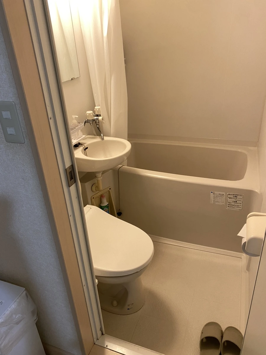 화장실에는 작고 깊은 욕조가 있다. 일본 특성상 화장실이 넓지는 않았지만 욕조가 있어서 여행하고 나서 아픈 발을 반신욕으로 풀어주기에 좋았다.