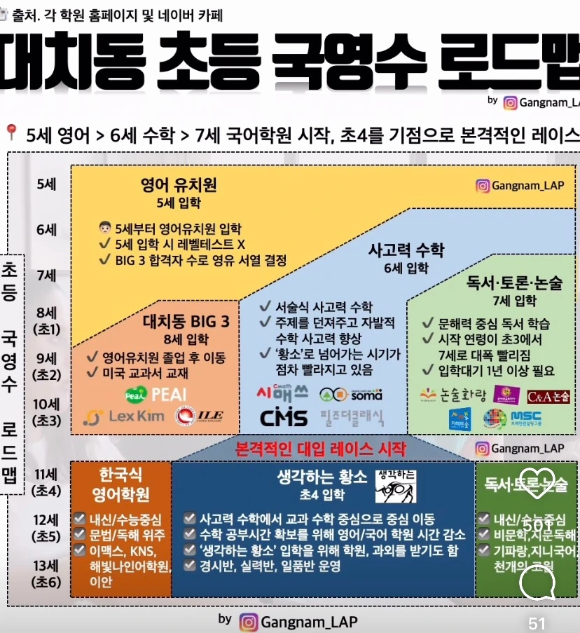 인스타그램에서 쉽게 찾아볼 수 있는, 또 이현이 유튜브에서 나왔던 대치동 로드맵은 이 사진이다.