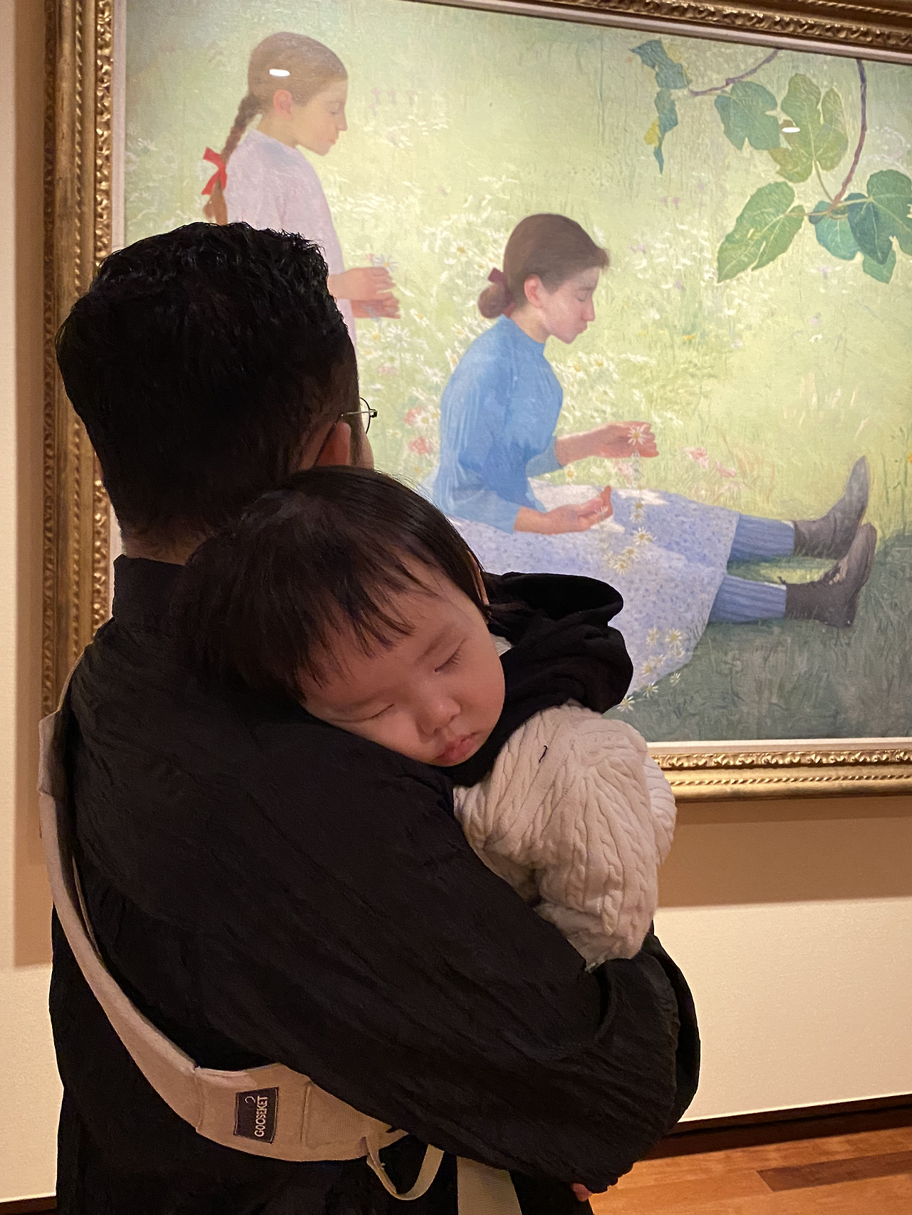 그러나 아이가 조금 더 크면 또 미술관 같은 곳은 같이 올 수조차 없겠다는 생각도 동시에 들었다. 나 역시 아빠가 가자고 했던 산에 가기 싫어했고 집에서 TV를 보고 싶어 했으니. 아이가 미술에 관심이 있는 사람으로 자란다면 정말 즐겁게 관람을 자주 할 테지만 그렇지 않을 수도 있다. 어쩌면 아직 취향이 없는 아기이기 때문에, 우리가 가는 곳으로 가야만 하는 아기이기 때문에 여행에서 '1일 1 미술관'을 해줄 수 있는 걸지도 모른다.