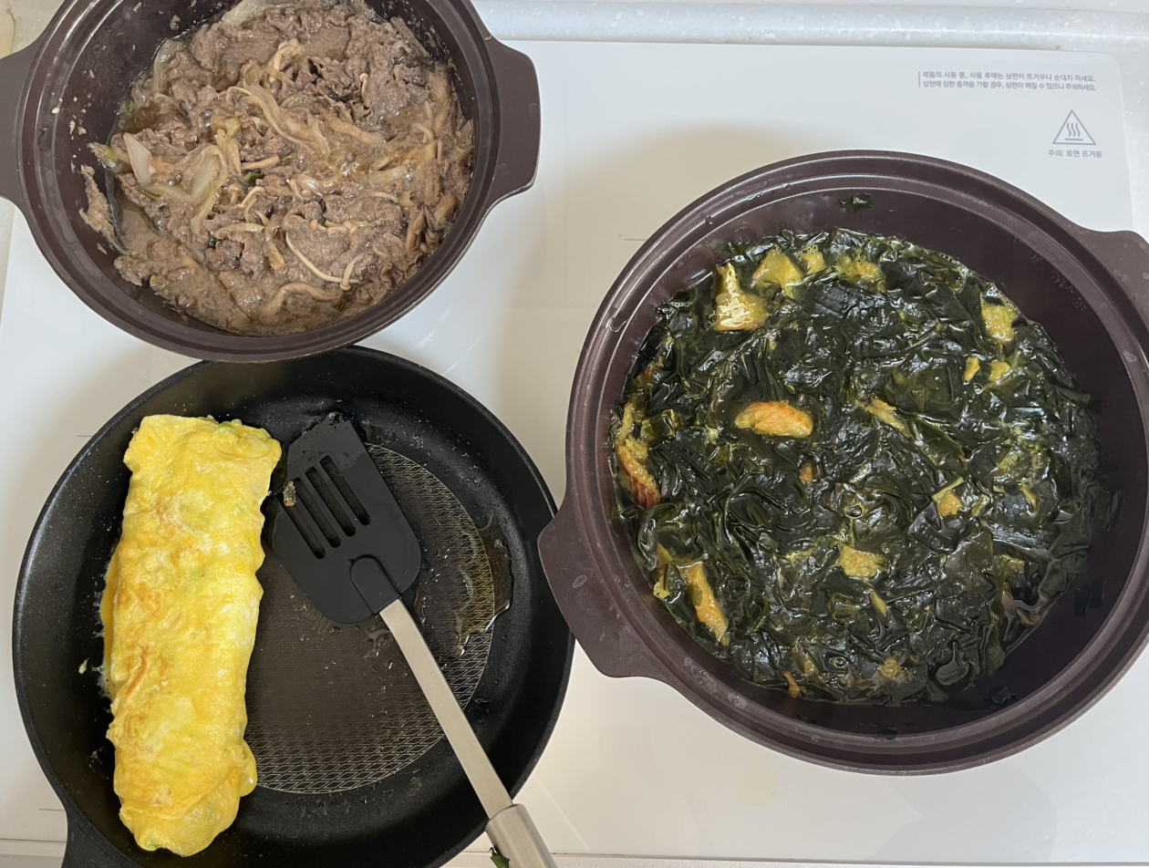 물론 처음 몇 번은 계란말이가 너무 익어 계란부침이 되기도, 부침개 한 면이 바싹 타버리기도 한다. 그러나 몇 번 하다 보면 여러 개의 요리를 동시에 하는 게 손에 익게 된다. 또 그 효율성에 뿌듯해진다.