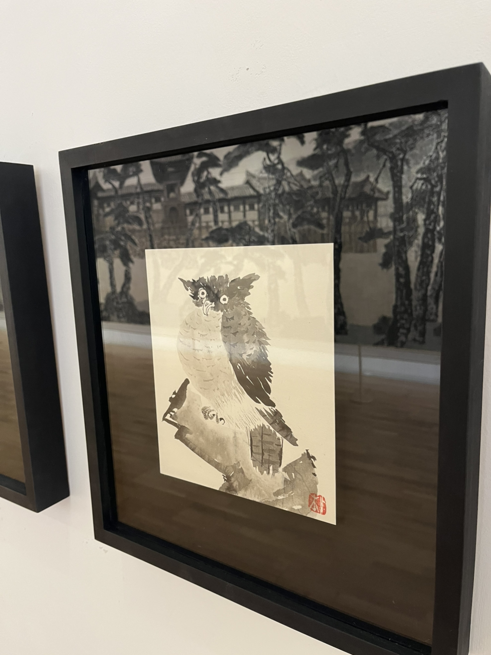 큰 그림 속 섬세한 터치처럼, 그가 그린 경주의 모습은 거대하면서도 의외의 귀여움이 들어차 있었다. 큰 나무와 둥그런 달 사이에 들어찬 작은 불상이나 조각들이 대조되면서 말이다. 큰 그림들 뿐 아니라 자회사이나 새를 그린 작은 그림들도 흑백 만화같이 통통 튀면서도 묵직함이 있었다.