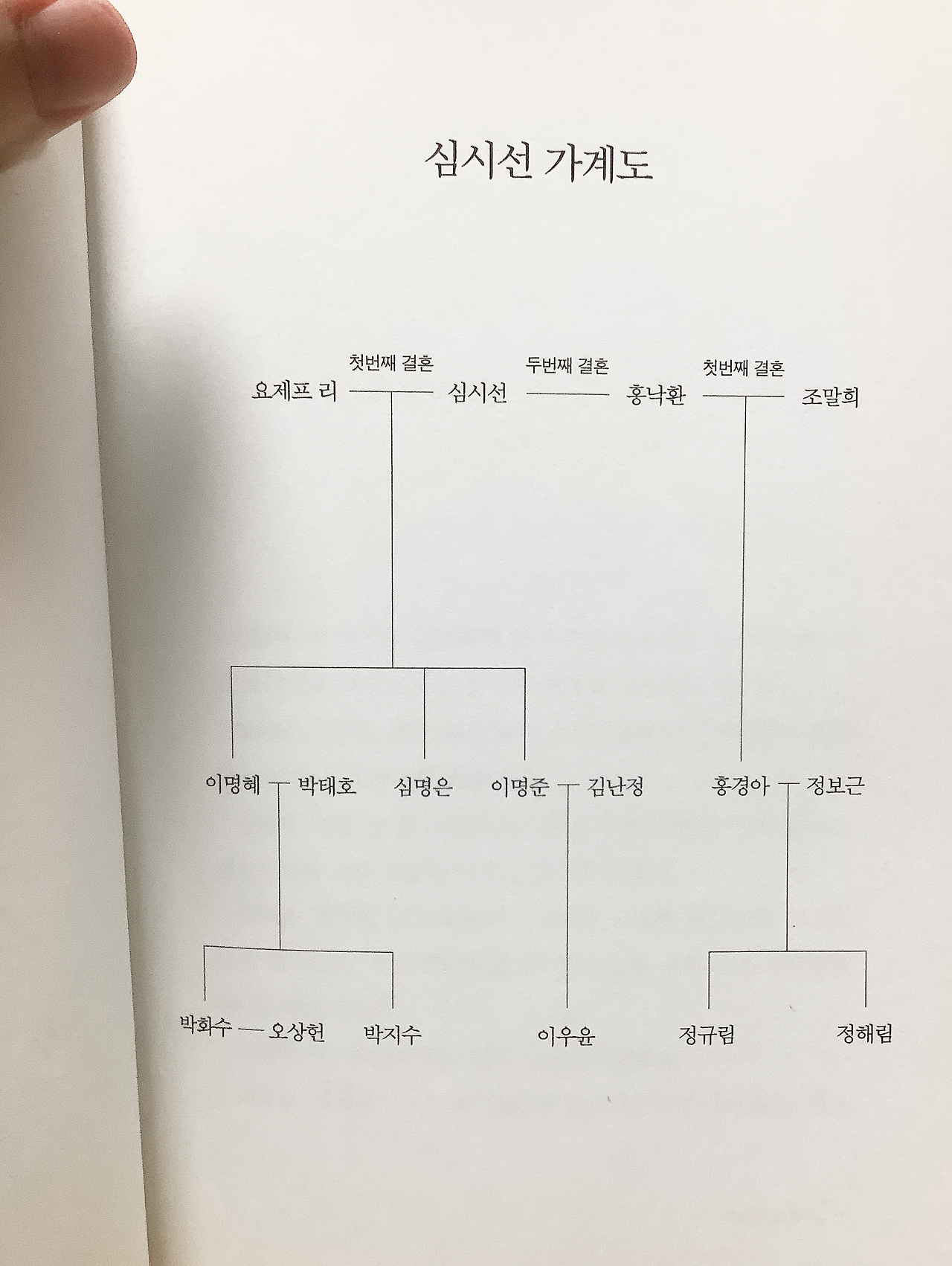심시선 가계도라는 문구와 아내가 왼쪽, 남편이 오른쪽에 있는 게 어색하다*. 상헌이 이 집안은 모계사회라고 농반 진반 말한 게 어떤 느낌인지 가계도만 봐도 조금은 알겠다.