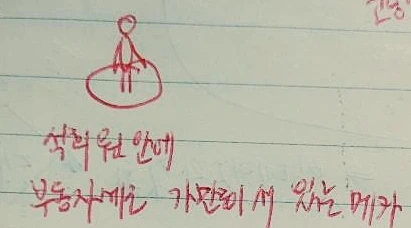 석회로 그린 원 안에 차렷하고 가만히 서 있는 메카의 모습은 마치 영어실력의 한계로 고립되어 있는 연구자처럼 느껴졌다