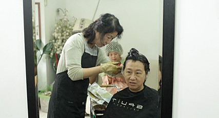 영화 <진주머리방>은 영화가 진행되는 6분 동안 주인 영미(엄옥란)와 그의 미용실을 보여준다. 관객인 우리가 영화를 통해 이 미용실 안을 들여다보는 것 같지만, 강유가람이 찍는 카메라 안에서 미용실은 되려 방문객과 불청객을 구별해낸다. 난데없는 인테리어 시공사의 방문. 영화는 미용실 안을 휘젓는 남자들의 몸짓을 가까이 따라가기보다 영미의 표정을 중심에 둠으로써 불청객이 주인의 주변을 배회하게끔 만든다. 공간의 주인은 영미이고 그러므로 공간에서 펼쳐지는 이야기의 주인도 영미다. 그 짐짓 불쾌함을 숨기지 못하고 선 여자의 표정이 카메라에 앞서자 일부 가려진 남자들의 동선과 목적도 무화된다. 목소리를 앞세우는 방법엔 여러 가지가 있다. 영미의 진주머리방은 밀어도 밀려나지 않은 터의 언어로, 소리 내지 않되 들려오는 존재감을 가진다.