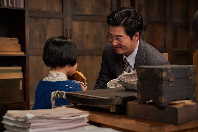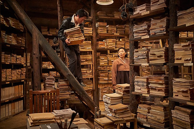 '눈물의 말모이, 웃음의 말모이'라더니 그 말이 맞긴 맞더라. 유머에 특화된 유해진 배우의 호흡이 영화의 감정선 전반을 주도하는 건 탁월하지 않더라도 무사히 관객의 정서에 안착할 수 있는 선택이었다. 러닝타임 동안 겪는 감정의 기복은 그 폭이 넓어질수록 '많은 것을 보고 느꼈다'는 충만감은 들게 할지라도 역사의 신파로부터 굳이 돌아가지 않으려는 행보는 역사 소재의 본질을 입체적으로 꿰뚫기 어렵게 만든다. 이 한계를 극복하려는지 관객과 영화 사이에 무언가 하나 더 끼어든다. '설명하는 연출'. 이 설명은 재현을 앞선다. 판수의 아들이 영화관에서 보는 선동 영화의 일부가 직접 삽입된 장면이나 엔딩 이후 보여지는 우리말 사전의 원고 실물 영상은 '이왕이면 좋은 내용 알기도 쉽게'라는 스토리에 대한 재확인이자 영화가 미처 탐구하지 못한 역사 본질에 대한 여분을 채우려는 수단으로도 보여진다.