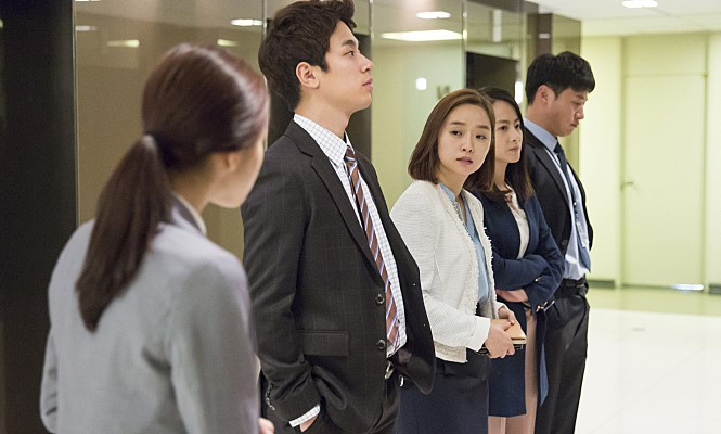 일주일에 몇십 시간을 출입하는 일상의 공간이 위협으로 돌아온다는 상상, 이제까지 공간에서 보내온 시간과 익숙함의 공기가 공간의 일원 중 하나인 '나'를 배신한다는 영화 <오피스>의 상상은 회사 바깥의 감시자이자 추적자인 종훈의 시선에서 시작하는 듯싶다가 어느덧 아직 정규직이 되지 못한 인턴 이미례의 시선에서 회사라는 영역 내지 집단, 무리를 바라보게 한다. 일상을 영위할 생계 수단의 영역이자 학벌과 위계로 점철된 집단, 그 권력관계를 파고들 여지를 주지 않은 무리로서의 '회사'라는 공간은 영화 속에서 김 과장이 일가족을 살해하고 이후 직원들이 차례로 변고를 당하는 유일한 원인, 바로 '피로감'을 제공한다는 전제로 영화 속에 등장한다.