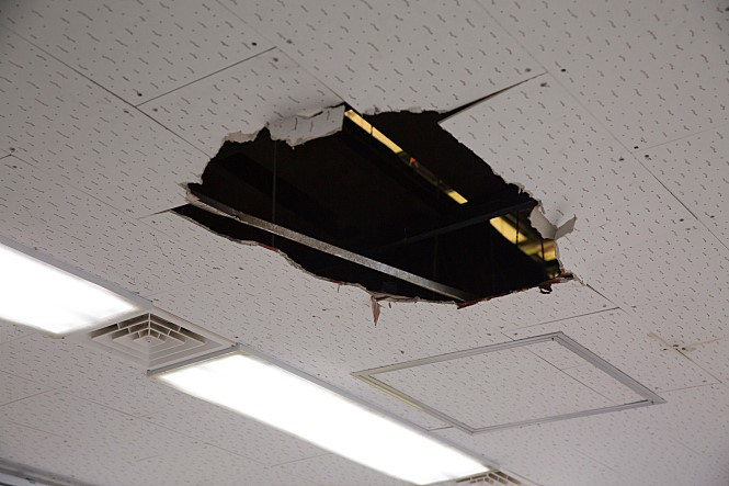 영화 <오피스>가 풀어놓은 좀비들이 회사를 나돌아 다니는 도식이 한 장면으로 이미지화되는 순간은 바로 심문이 한창 이루어지던 그 시기에 회의실 천장을 자살한 사원 정재일(오대환)의 시체가 뚫고 나온 장면이다. 목을 메단 그의 얼굴은 뚫려있는 천장 구멍에 가려져 입가만 겨우 드러나있고, 그 처참했던 현장을 대변하는 듯 명찰 속 활짝 웃고 있는 그의 증명사진이 피에 물들어있다. 일상에서 이질적인 상황이 나타났을 때 그것을 해결한다는 건 결국 원인이었던 사물이나 사람을 없애는 일일 것이다. 그러나 죽다 살아난 좀비들이 보통의 방법으로 좀처럼 쓰러지지 않는 것처럼 현장 수사 테이프로 회의실을 봉쇄해본들 회사에서 사람이 죽었다는 찝찝함은 사라지지 않는다. 아니, 식품회사에서 근무하던 직원이 둘이나 죽었다는 사실 자체가 밖으로 새어나가지 않게 전전긍긍하는 인물들은 그 찝찝함을 느낄 새조차 없다. 사람이 어디서 죽었든지 간에 일단 회사는 매일 나가야만 한다. 출근해서 일을 하고 살아남기 위해 최선이 아닌 차악의 선택을 해야만 한다. 그 사실만으로 팀 내의 직원들 모두 김병국과 이미례가 만들어놓은 덫에 걸리고 만다. 아니, '함께 갇힌' 이들은 먼저 살아남기 위해 도망치거나 죽임 당하는 운명 앞에 놓인다.