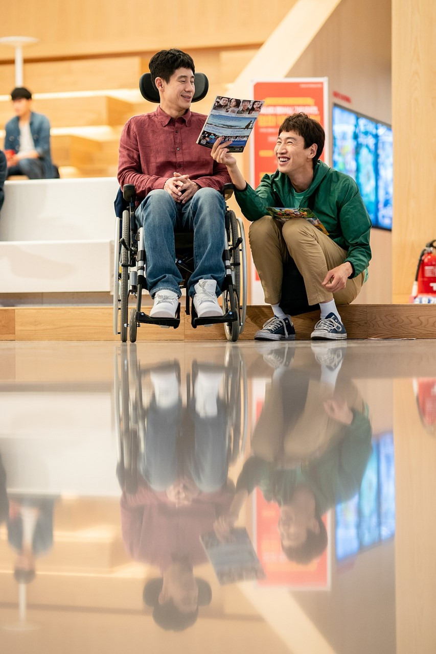 영화 <나의 특별한 형제>는 이 기대와 조금 다른 노선으로 부합한다. 그 선택엔 장애인 캐릭터에 쉽게 덧씌웠던 약자 프레임에 대한 반성이 녹아있기도 하다. 몸이 움직이지 않는 지체 장애 세하(신하균)와 5살 지능의 지적 장애 동구(이광수)는 이들을 한데서 보살핀 '책임의 집'에서 형제처럼 커왔다. 가장 노릇을 해왔던 박신부(권해효)가 죽자 복지 지원이 취소될 위기에 처하고 세하는 이대로 물러나지 않기위해 봉사활동 시간을 빌미로 사람들과 돈거래를 한다. 봉사시간에 대한 수요와 봉사활동 기록의 공급이 언덕을 내려가는 휠체어 바퀴처럼 착착 맞아떨어져들어가지만 그들 주변 사회는 형제를 가만히 내버려두지 않는다.사람들은 자본주의의 논리가 경계, 아니 경계 바깥에 밀려난 인물에게 맞아떨어지지 않도록 호락호락하지 않는다.