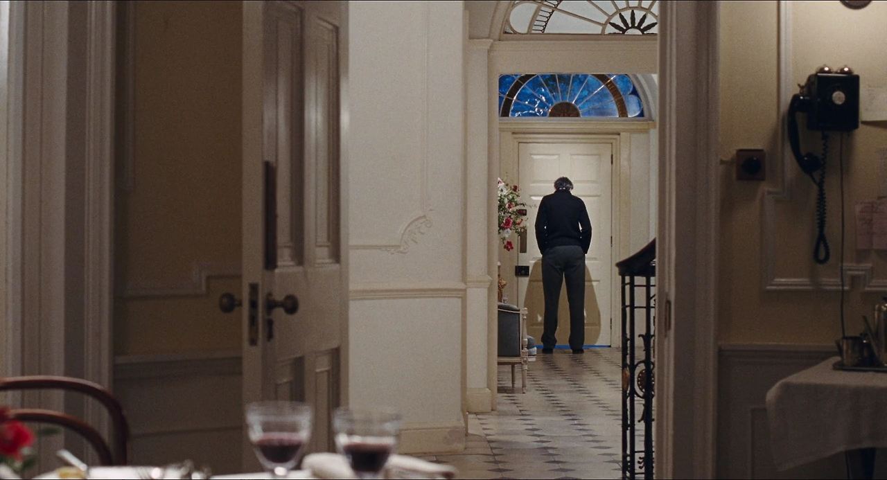 안정적인 분할의 미장센이 집안의 생리를 구가해놓았다면 인물들은 집안의 기둥격인 계단 위에 서서 수직적으로 유영하는 카메라 시선에 의해 가시적인 관계도로 구현된다. 어느 날 알마는 집안의 모든 사람들을 나가게 하고 홀로 레이놀즈를 위한 저녁식사를 준비한다. 이 영화의 분기점을 꼽으라면 자신이 직접 디자인한 드레스를 입고 알마가 레이놀즈를 내려다보는 장면이겠다. 알마의 돌발행동에 의해 처음으로 질서의 부재를 느낀 레이놀즈는 이를 탐탁치 않아하고 그녀는 그간 참아온 분통을 터트리고 만다.