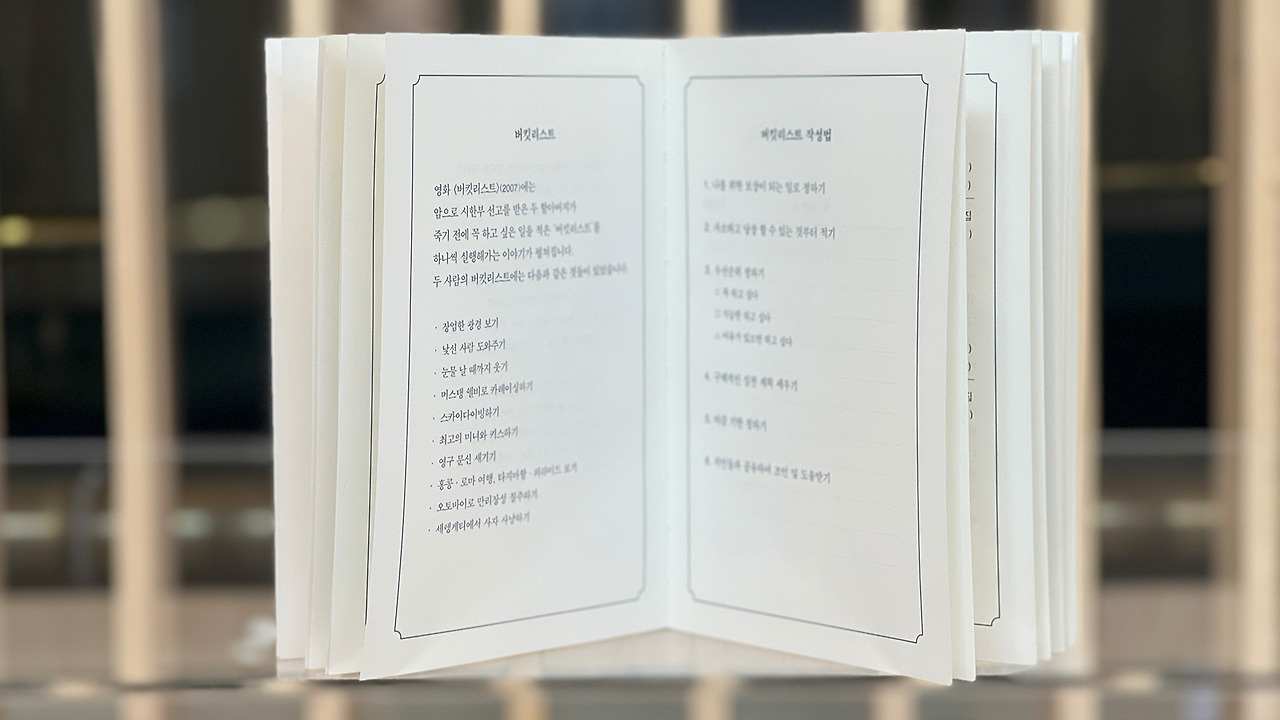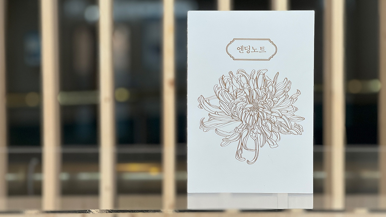 세상 모든 꽃 가운데 사람 꽃이 가장 아름답다는 이야기가 있습니다. 여러분은 어떤 꽃을 피우고 계신가요? 저는 또 어떤 꽃일까요? 엔딩노트는 우리가 갑작스러운 죽음을 맞이할 때 혹은 가족들에게 내 마음을 또 나의 기록을 정확하게 전달하지 못하는 상황이 생길 수 있잖아요. 그때를 위해서 아주 세세하게 하나씩 하나씩 적도록 되어 있습니다.