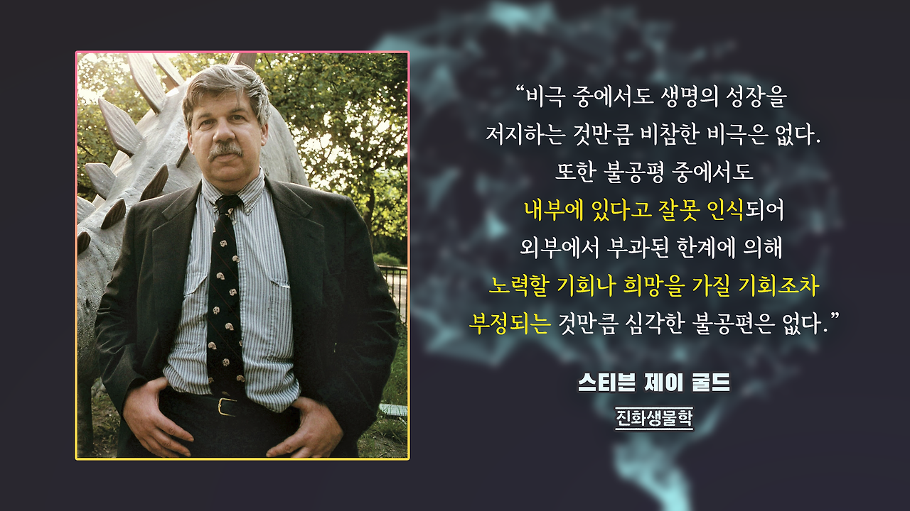 몇 해 전 뇌과학 시리즈 영상에서, 저는 좌뇌와 우뇌를 잇는 교량역할을 하는 뇌량을 소개한 적이 있습니다. 그때 저는 너무도 당당하게 여성의 뇌량이 남성보다 더 두껍고 크다고 했어요. 또 평생 사용하는 어휘가 여성이 남성에 비해 훨씬 더 많다고도 했습니다. 결론은 좌뇌와 우뇌를 연결하는 뇌량처럼 남성과 여성 사이의 갈등, 우리 사회의 여려 편견과 편향을 소통으로 극복하는 것이 어떻겠느냐는 이야기를 한 적이 있었어요. 의도는 좋았지만, 이런 이야기의 바탕에는 남자와 여자의 뇌가 서로 다르다는 ‘편견’을 갖고 있었단 말이죠. 왜? 그렇게 배웠으니까요. 여기 진화생물학자 스티븐 제이굴드의 말이 있습니다.